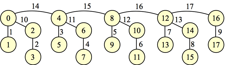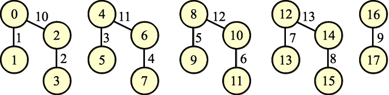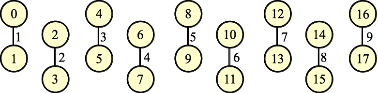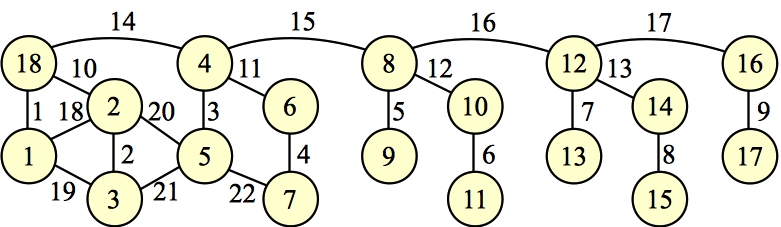 We need to finish up in round three, so we connect all of the components with edges in consecutive order:
