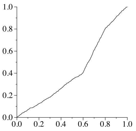 We can double-check ourselves by generating 1000 numbers (this is done in Q7.cpp), and converting them into something that looks like a CDF (as we did in class):