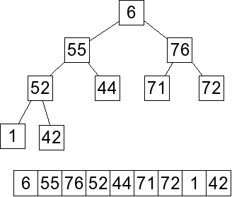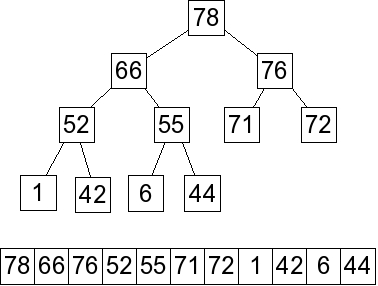 Now we percolate down -- the 6 will be swapped with 76 and 72 to yield the following -- the array