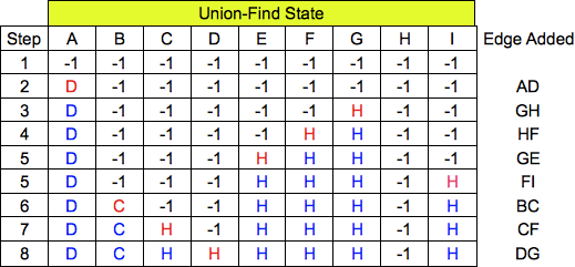 Dijkstra's algorithm -- here are the states at each step: