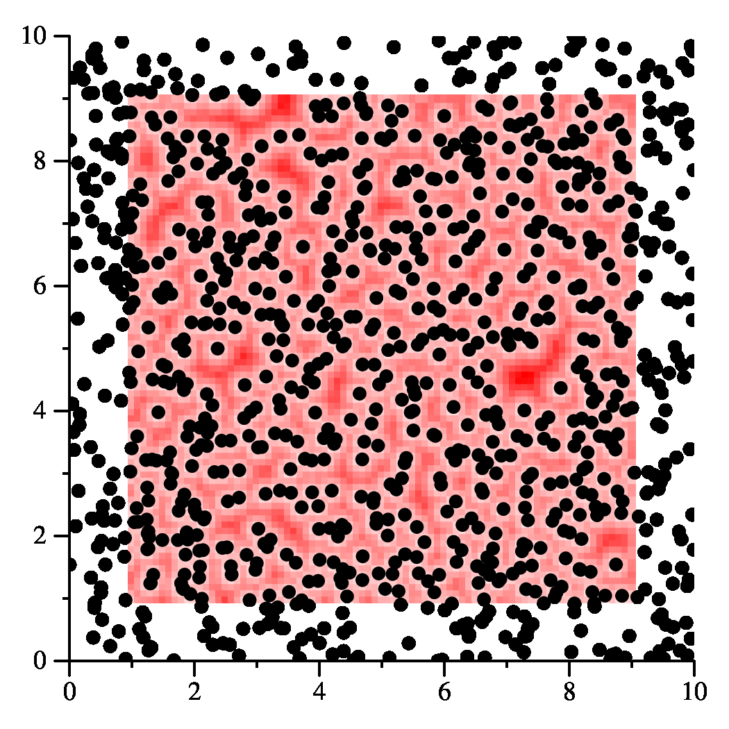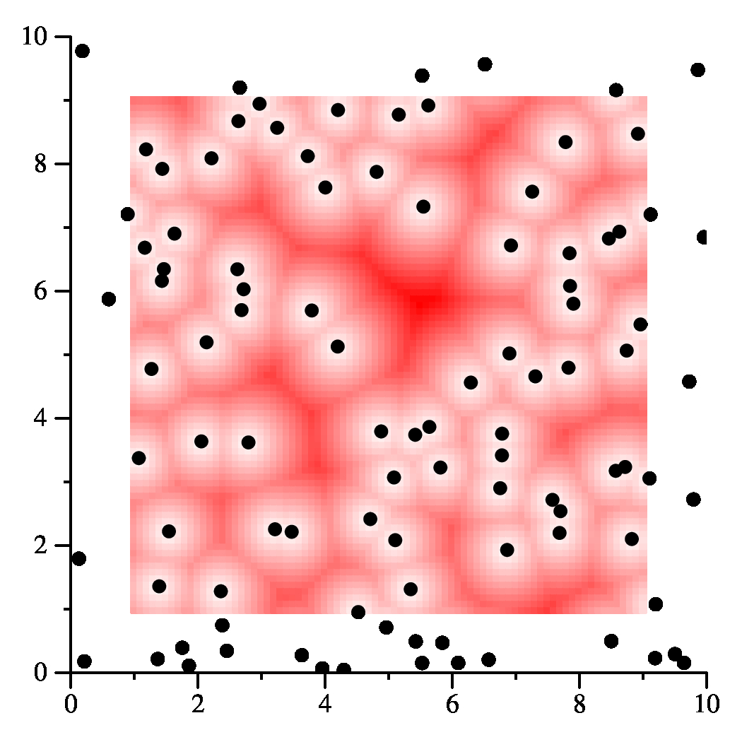 For my demonstration, my goal is to present a function that is intuitive, clearly non-linear, but not mathematically complicated. Here it is. My function is defined by a set of points, P, in a bounded n-dimensional coordinate system. The coordinate system is bounded in that all points have coordinates that are between 0 and 10 (inclusive). The function takes n points(x0, x0, ..., xn-1), and it returns the shortest distance to any point in P. Our goal is to maximize this function for all points whose values are between 1 and 9 (I'd do 0 and 10, but that tends to have maxima that are on the border).
