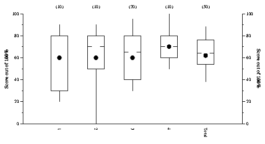 Tukey plots of exam scores