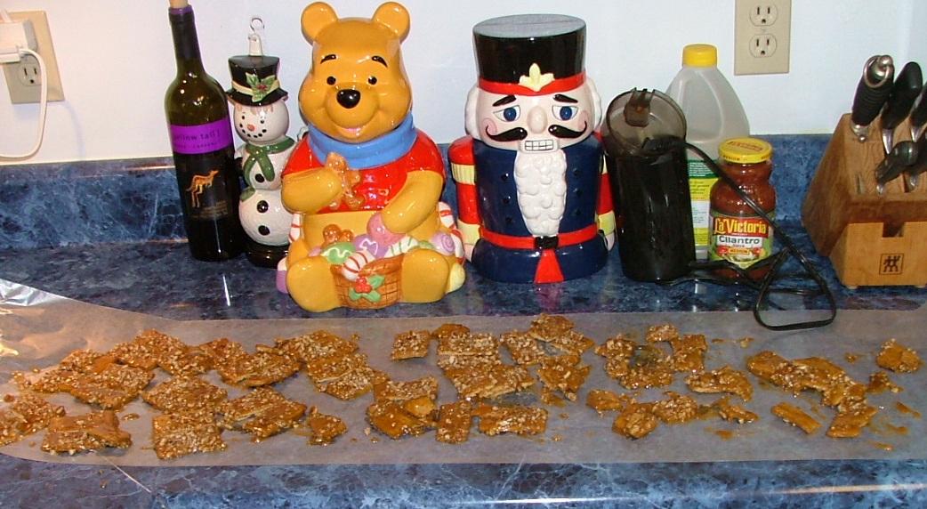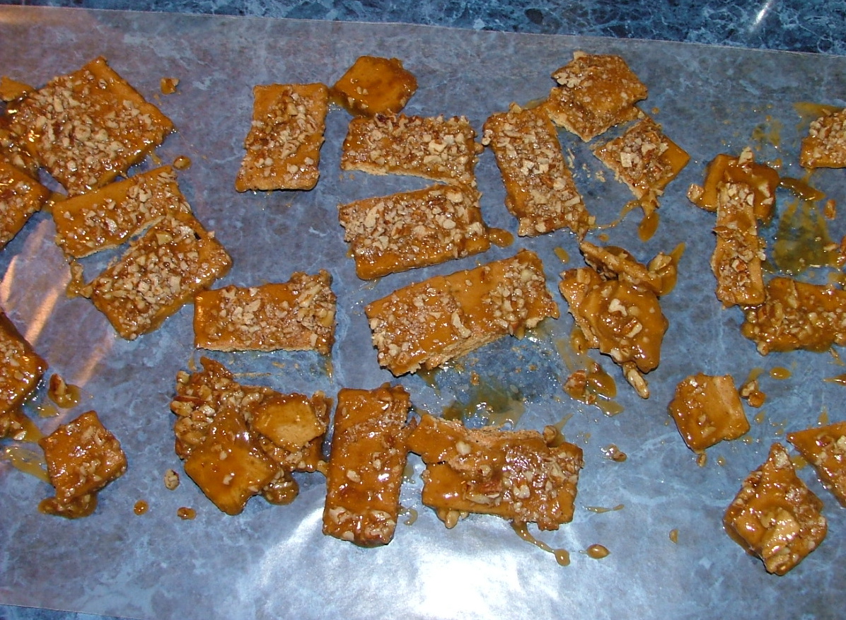 Bake for 10 minutes. Remove to wax paper, and break up the squares