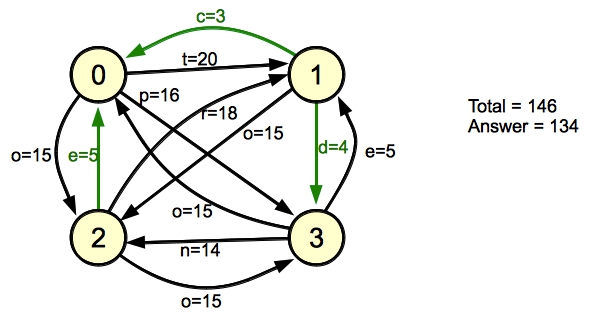 is 146, minus the edges in the minimum spanning tree, which is 12. The answer is 134.