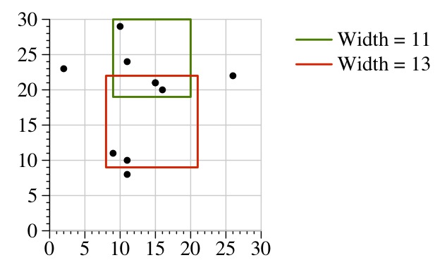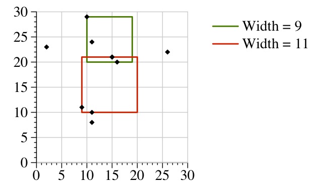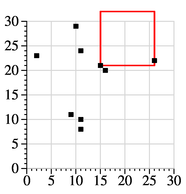 And finally, here's the code to find the number of points in the square with a given lower-left corner and a given width: