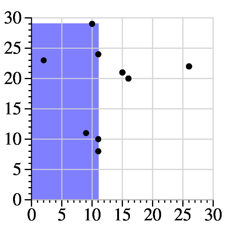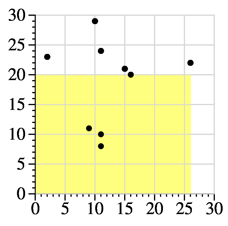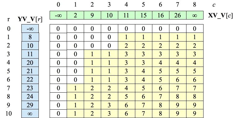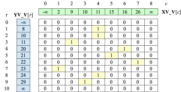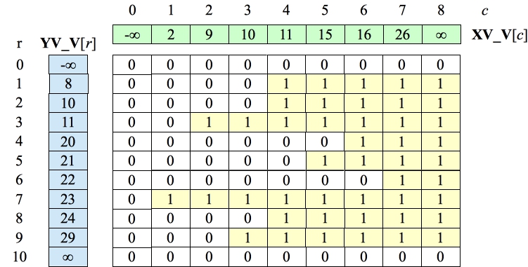x values are <= XV[j] and whose y values are <= YV[i]. */