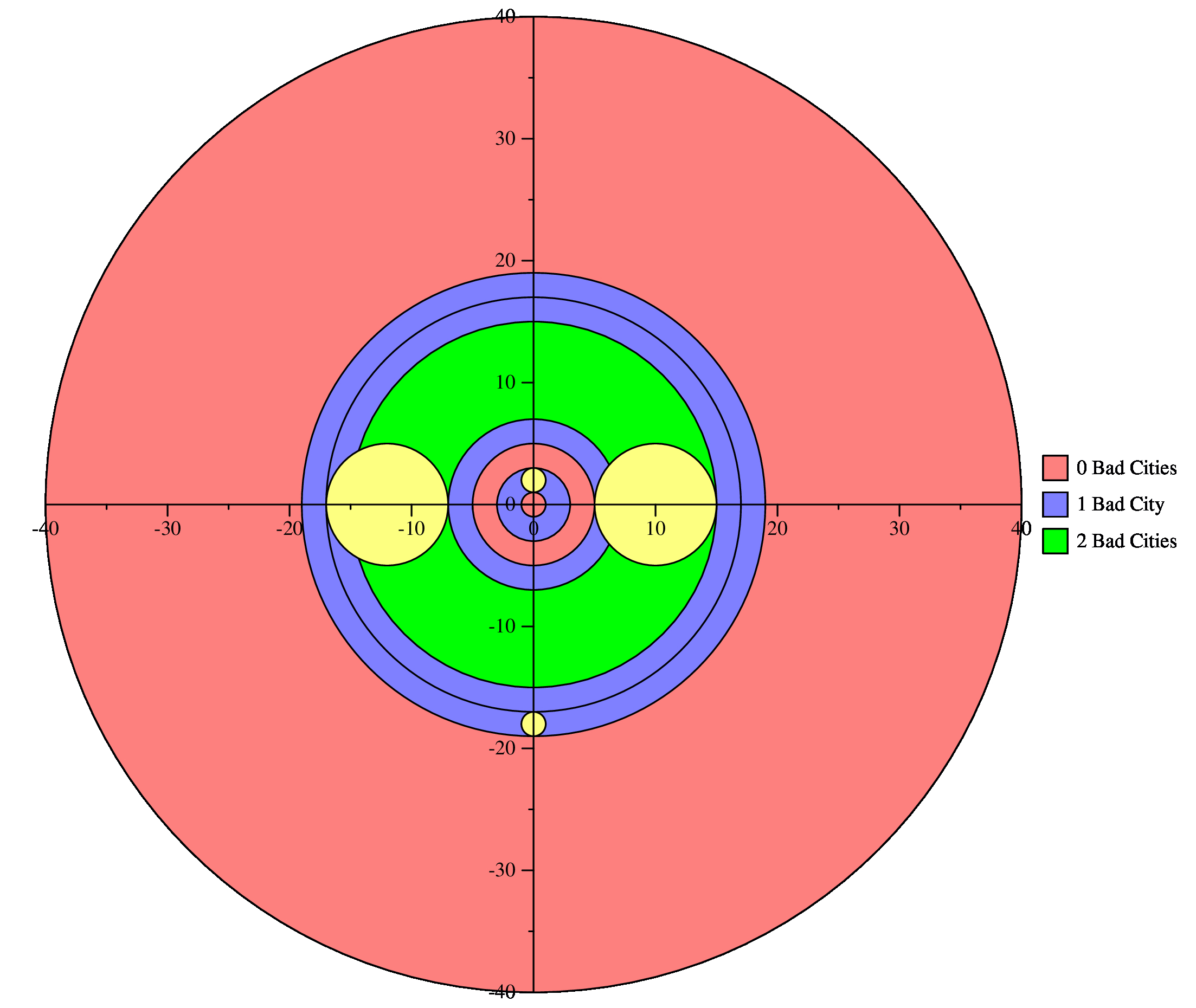 Here's a picture of the cities and how you keep track of the regions of bad cities. I'm hoping this helps you figure out the map and what you do (if you click on it, you'll see it in full resolution):