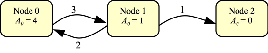 And let's do one more -- calculating A2. We do this from node 2 back to node 0: