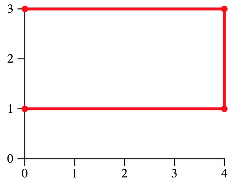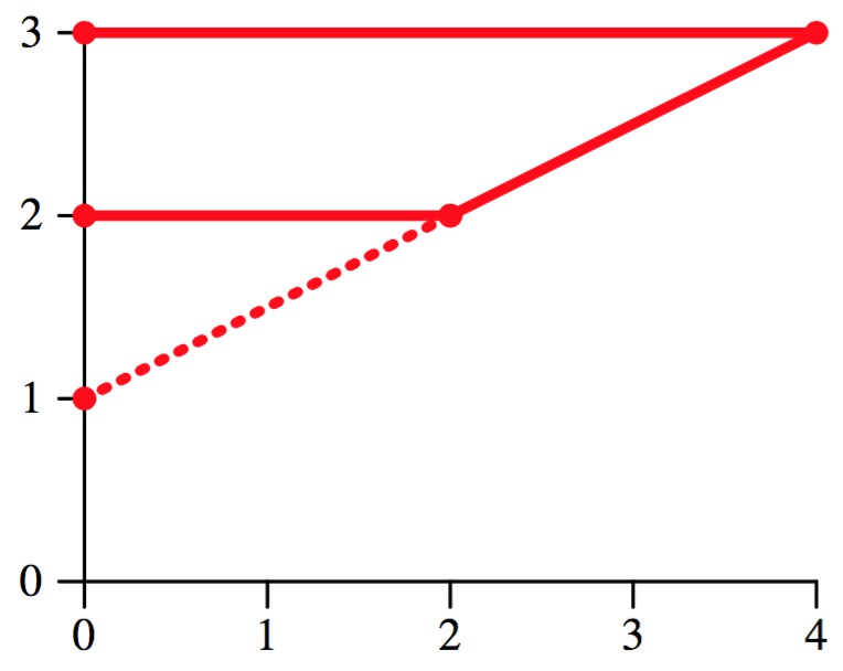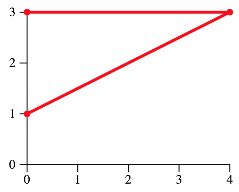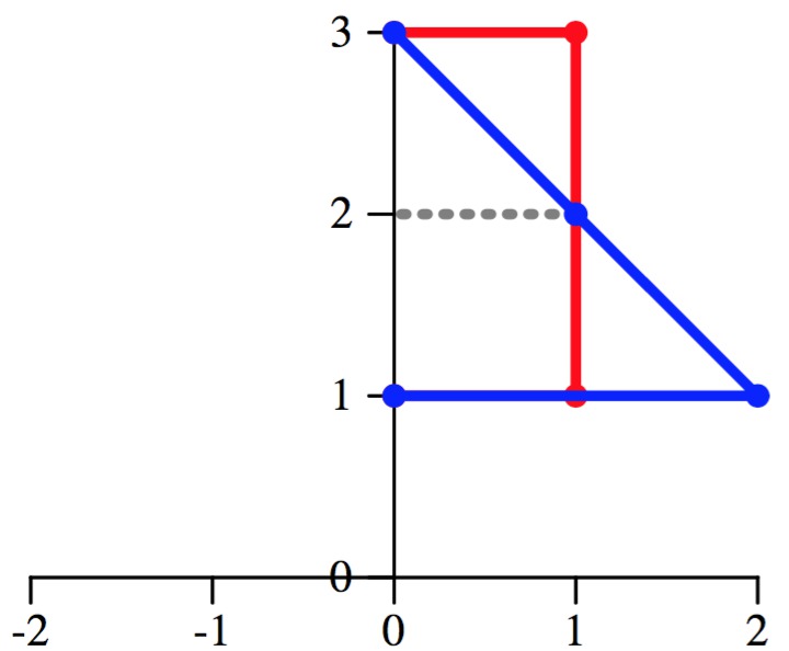 - Y values 1 to 3: The red and blue segments are the same: (0,1)-(2,3). This is