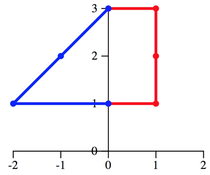 (0,3), (1,3), (1,2), (1,1), (0,1), (-2,1), (0,3)